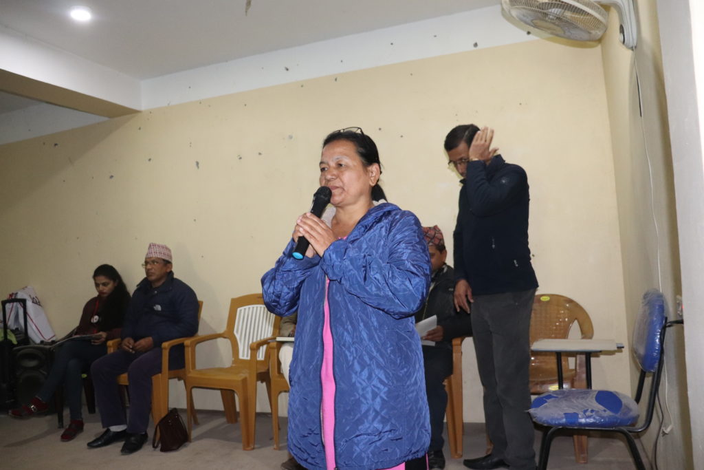 नगरपालिकामा न्यायिक समितीमा पनि यस्ता हिंसाका घटना आउने गरेको उल्लेख गर्दै समाजले महिला हिंसा कम गर्न चेतनानै मुख्य विषय रहेको बताईन ।