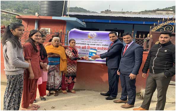 रिलायन्स फाइनान्सले आफ्नो दशौं बर्ष पुरा गरी एघारौं बर्षमा प्रवेश गरेको अबसरमा संस्थागत सामाजिक उत्तरदायित्वअन्तर्गत पोखरा महानगरपालिका वडा नं ५ स्थित पोखरेली दिदी वहीनी समुहलाई सडक बत्तीको सामाग्री हस्तान्तरण गरेको छ ।