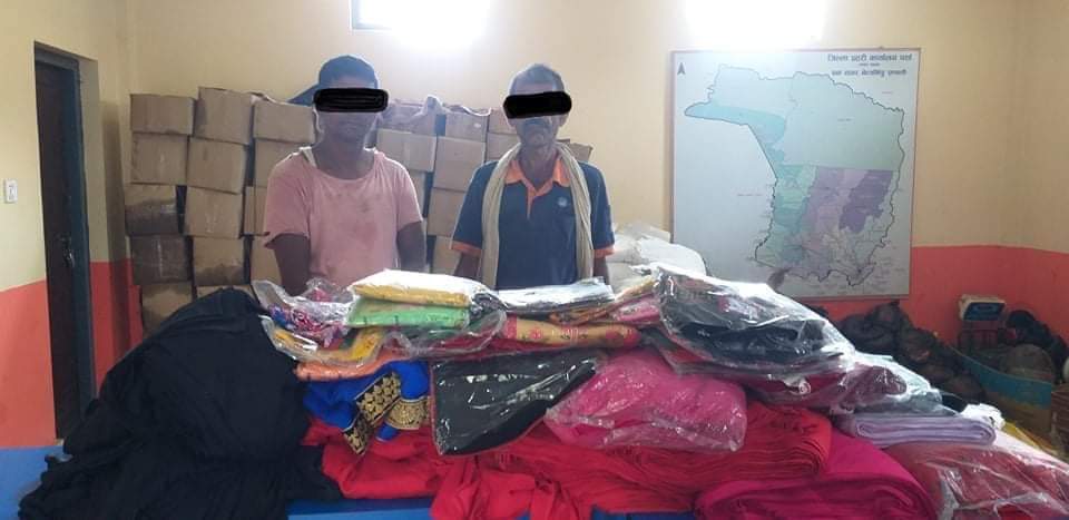 उनीहरुवाट अवैध रुपमा भारतबाट नेपालतर्फ भंसार छली ल्याउदै गरेको थानको कपडा, कुर्ता सुरुवाल लगायत झण्डै ३६,५७०। मुल्य बराबरको लत्ताकपडा वरामद गरिएको समेत जनाएको छ ।
