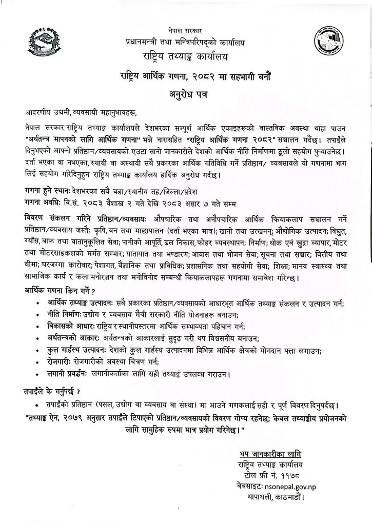 जिल्ला आर्थिक गणना कार्यालयको सूचना